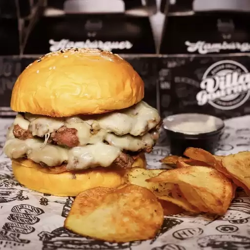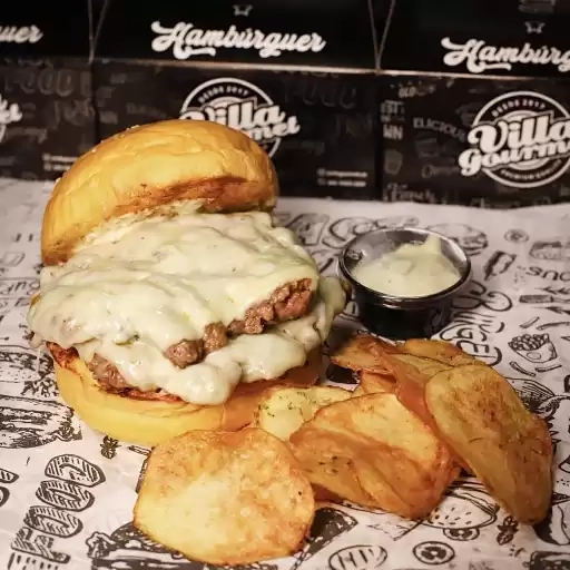 Pão brioche, maionese artesanal, Blend 160g grelhado e queijo mussarela. Acompanha batata chips e maionese artesanal da... Ver completo